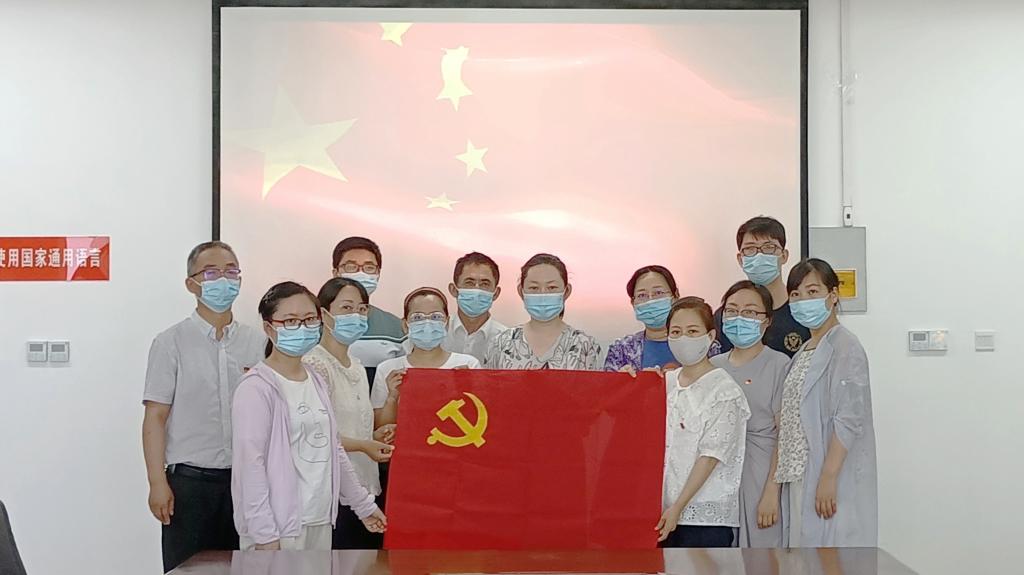 6月2日下午18:00在C3-II510会议室,党支部书记田娟老师带领大家学习了党旗党徽的故事。通过学习,使大家进一步了解到中国共产党的党徽党旗由来。党徽为金黄色的镰刀和锤头组成的图案,党旗为旗面缀有党徽图案的红旗,红色象征革命,金黄色象征光明。锤头、镰刀代表工人和农民的劳动工具,象征着中国共产党是中国工人阶级的先锋队,代表着工人阶级和广大人民群众的根本利益。接着,伴随着“线儿长、针儿密,含着热泪绣党旗”悠扬的曲调,大家开始穿针引线,轮流认真地在鲜红的党旗上落下每一针。党员同志们齐心协力,绣着党旗诉说着党史,把爱党、敬党的浓浓情感融入亲手绣制的党旗之中。